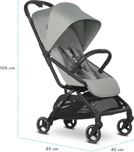 Rockey S is the lightest model in the EASYWALKER ROCKEY family – it weighs just 7 kg and folds and unfolds fully automatically into a super-compact package that meets carry-on luggage dimensions. Yet it offers a surprisingly spacious seat with a full flat recline, making it ideal for longer naps and comfortable travel.