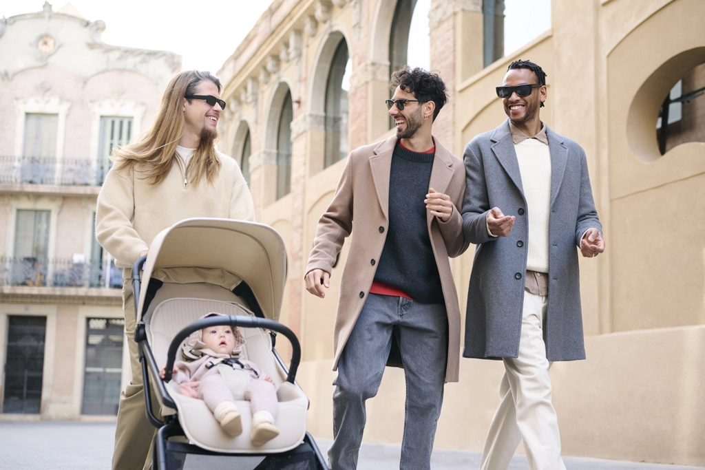 The stroller is from birth compatible with a carrycot (the same for Rockey S/M/L) and with an infant car seat using adapters. Premium textiles made from recycled materials, a 5-point harness, a removable and rotating bumper bar, an adjustable leg rest, and a large extendable canopy with side ventilation ensure comfort and safety. All four wheels feature suspension, with an advanced brake and an integrated safety indicator for a calm and confident ride.