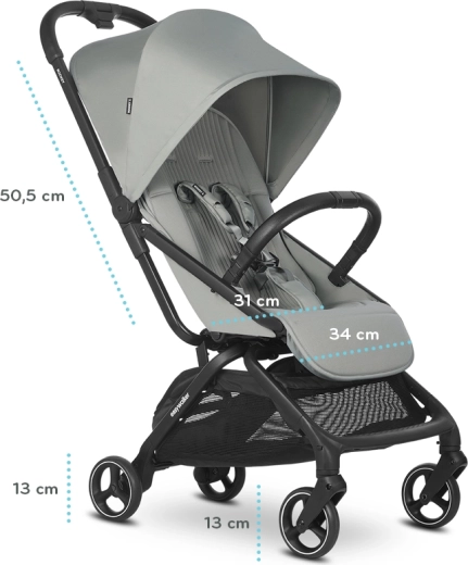 Rockey S is the lightest model in the ROCKEY family – weighing only 7 kg, yet providing a comfortable and spacious seat with full recline. Thanks to one-click automatic folding and unfolding, you’ll have a stroller ready for the car, public transport, or plane in moments. The extendable canopy with side ventilation protects your child in the sun and while traveling, while 4-wheel suspension and an advanced braking system ensure a smooth and safe ride.