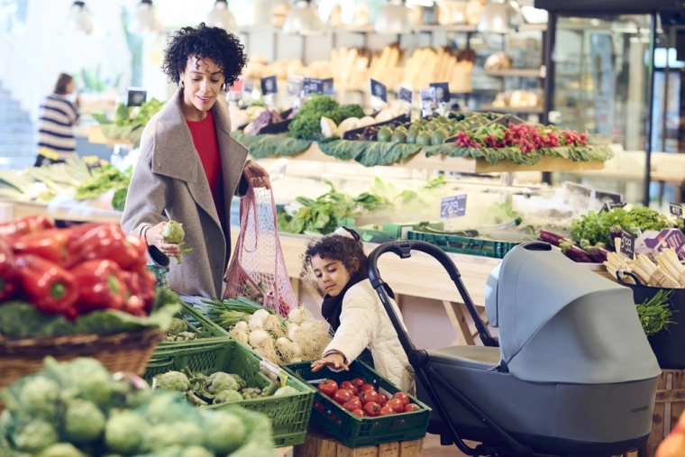 Premium-quality materials are made from recycled plastics; the covers are easy to maintain and the seat insert is removable and washable. The stroller is compatible with a carrycot and with a car seat (using adapters), so you can use it from day one. A practical shopping basket, tall handlebar, rotating bumper bar, and adjustable footrest round out everyday comfort.