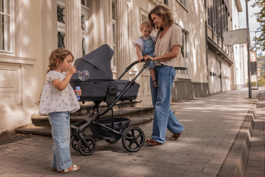 Large wheels and a high-quality chassis ensure stability and agility. With the optional air tire set, you will comfortably tackle cobblestones and forest trails while keeping your child at ease.