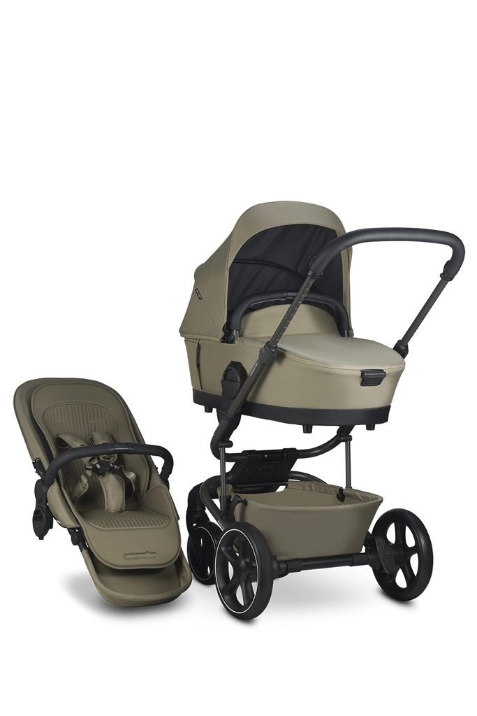 The modern Easywalker Harvey NXT Set XL stroller in Moss Green combines the smoothest ride, compact folding, and maximum comfort for both child and parent. It offers a reversible seat unit with 3 positions, a spacious carrycot from birth with organic cotton, a UPF 50+ canopy, and a large 10 kg basket. Thanks to high-quality wheels and the option to expand to a duo, it handles both city streets and rougher terrain.