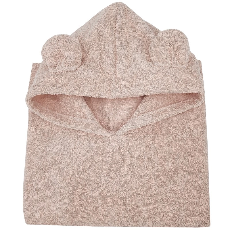 Eko kids’ cotton poncho with hood and ears, powder pink 75 × 120 cm