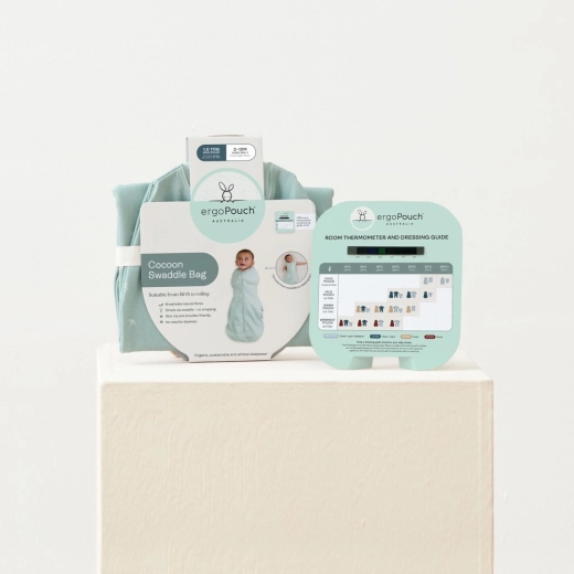 The 2-in-1 ERGOPOUCH Cocoon swaddle and sleep bag supports calmer settling by gently reducing the startle reflex while allowing natural movement. The chest area is lightened to 1.0 TOG for better thermoregulation and free breathing. The bell-shaped lower section is hip-healthy and respects the ergonomic development of the baby.