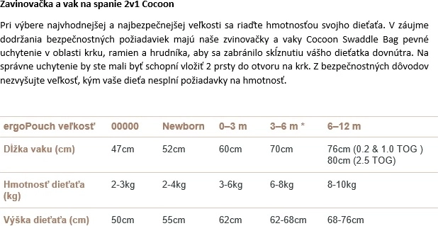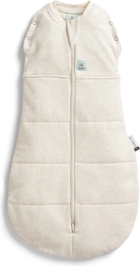 Practical 2-in-1 ERGOPOUCH Cocoon swaddle and sleeping bag for babies 6–12 months (8–10 kg) with a thermal rating of 2.5 TOG ensures a safe and comfortable sleep without a blanket at a room temperature of 17–23 °C. It is made from GOTS organic cotton with a bamboo blend, is breathable and soft, and gentle even on sensitive skin. Thanks to the two-way zipper it makes changing easier, and with the shoulder snaps you can easily convert it into a sleeping bag for the stage when the baby starts to roll.