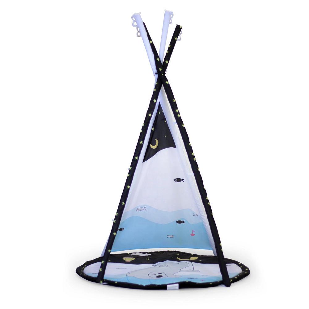 - 3-in-1: play mat with arch, shaded mat, teepee tent
