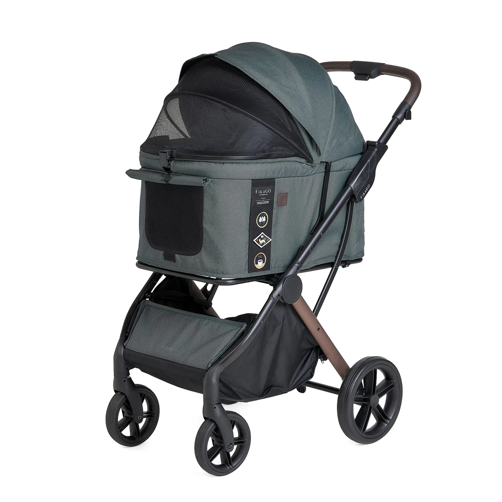 The stylish and practical pet stroller FIKAGO AGILE 2 in the elegant shade Vintage Green ensures comfortable and safe transport for both cats and dogs. Thanks to one-hand automatic folding, a self-standing frame, and suspension on all 4 wheels, it’s ideal for everyday walks and travel. The spacious cabin with a comfortable mat, water-repellent recycled fabric, and thoughtful details make this stroller a reliable companion for you and your pet.