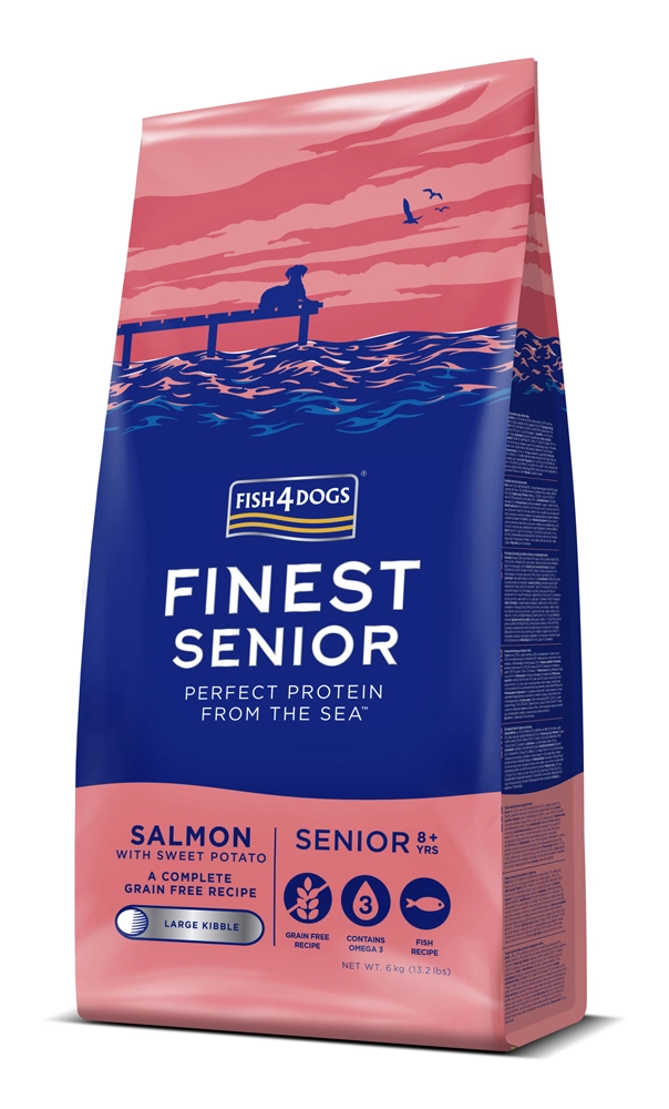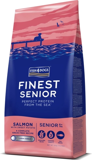 Looking for a gentle and tasty food for senior dogs? Fish4Dogs offers kibble with a high salmon content to provide quality protein and valuable omega-3s. Sweet potatoes are a nutritious alternative to white potatoes and help maintain steady energy throughout the day.