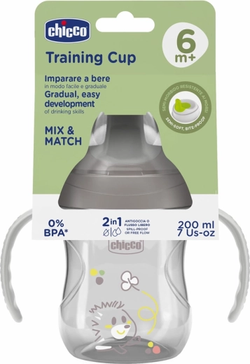 Make the transition from bottle to cup easier with the CHICCO Training cup. The semi-soft spout is shaped for proper lip placement and to support an optimal neck position while drinking. Removable ergonomic handles and a body with a gentle nose cutout ensure a comfortable hold even for the smallest hands.