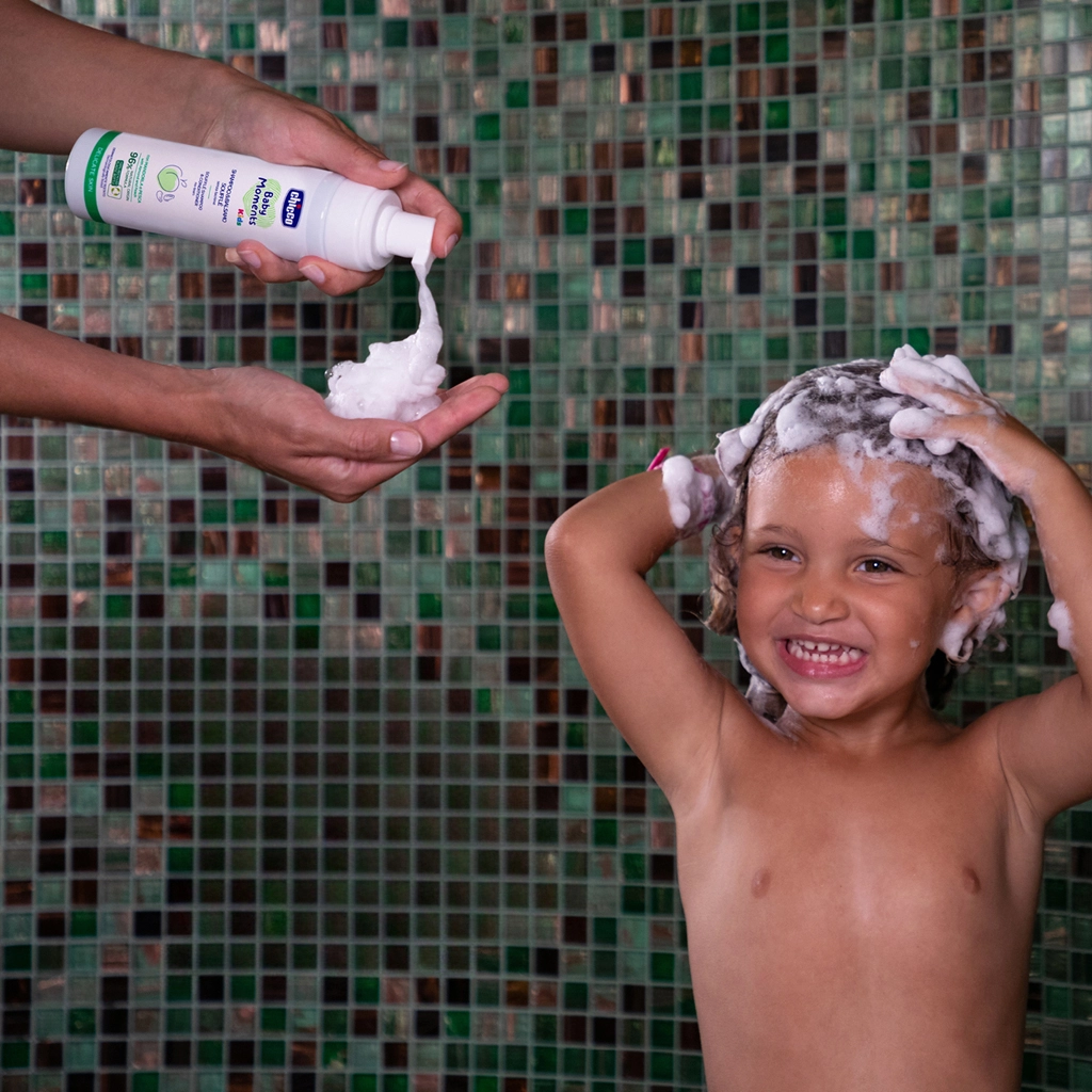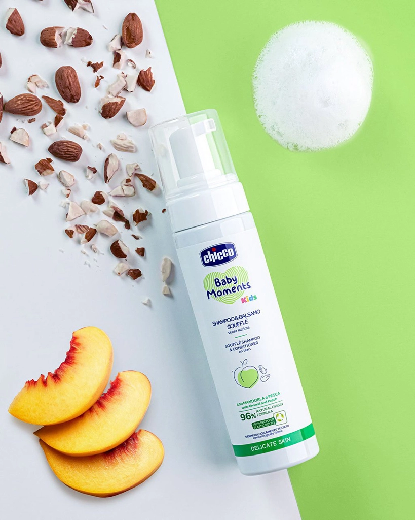Discover care kids will love – the fluffy, fragrant foam of CHICCO Baby Moments Kids Soufflé 2‑in‑1 gently washes while making detangling easier. Thanks to the blend of almond and peach extracts, children’s hair stays soft, smooth, and beautifully shiny. It’s tear-free and respects delicate kids’ skin.
