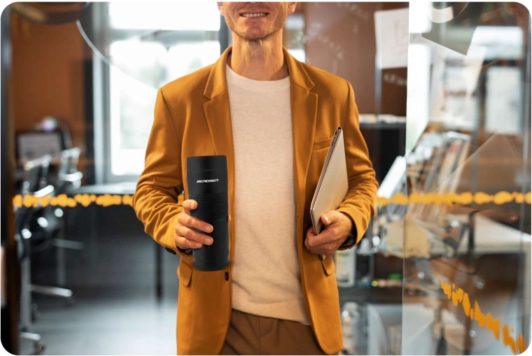 The textured midsection ensures a safe hold even on the move or with gloves. Perfect for the car, trips, and workouts.