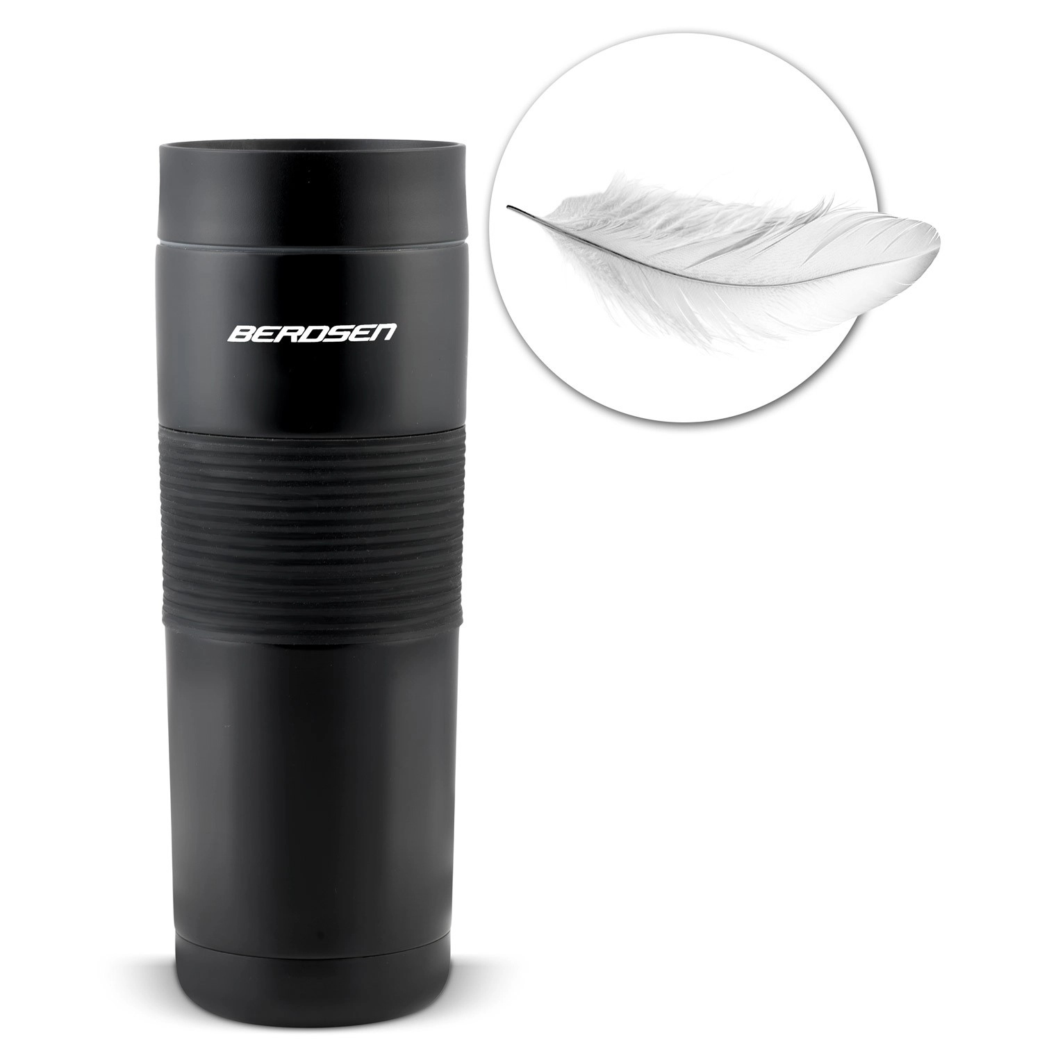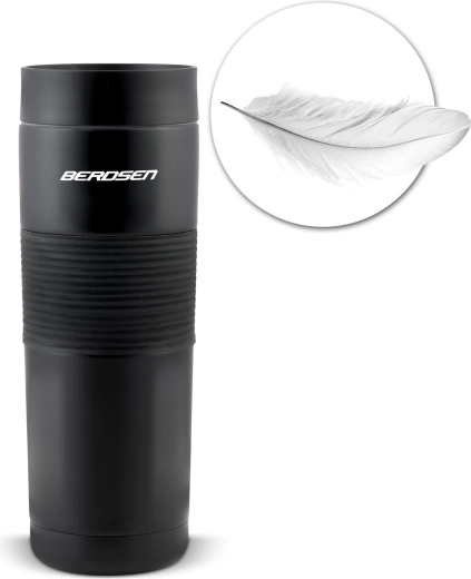 The lightweight and durable BERDSEN thermos with a 590 ml capacity keeps hot drinks warm for up to 12 hours and cold drinks chilled for up to 24 hours. Thanks to its double-walled stainless steel design, non-slip grip, and leakproof push-button lid, it’s ideal for travel, sports, and the car. It includes a pop-up straw for convenient sipping without tilting the bottle.