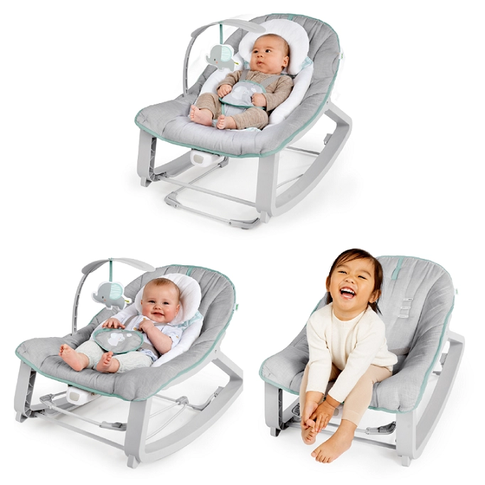 INGENUITY Keep Cozy Weave is a smart 3-in-1 swing and seat that adapts to the needs of babies and toddlers. Switch effortlessly between gentle swaying, classic swinging, and a stationary seat thanks to the lockable stand. Comfort is ensured by a plush headrest, soft padding, and 2 recline levels for ideal positioning during rest and play.