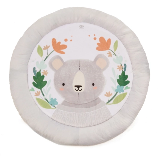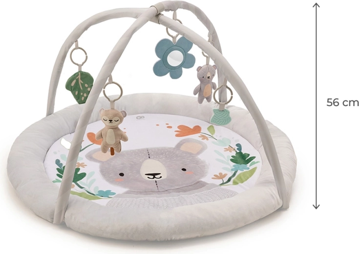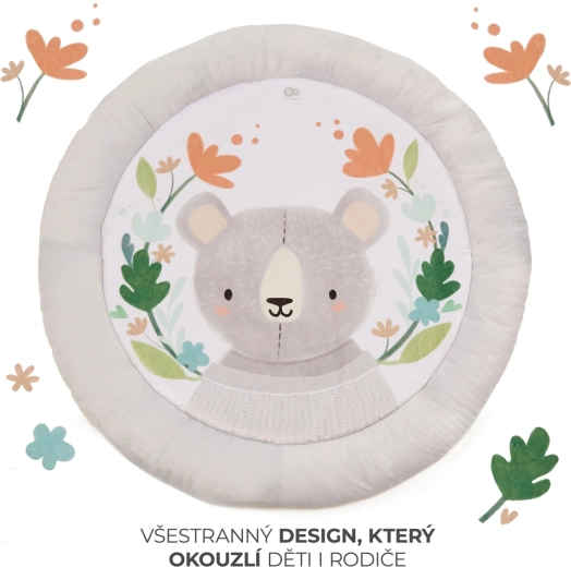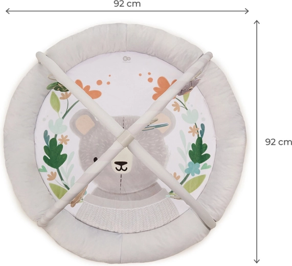 The COZYPLAY play mat combines comfort, safety, and design. The round, generously padded surface with illustrations by a European artist creates a cozy place for tummy time, first grasps, and relaxation. Two soft arches allow for variable toy placement, adapting stimuli to your baby’s age and skills.