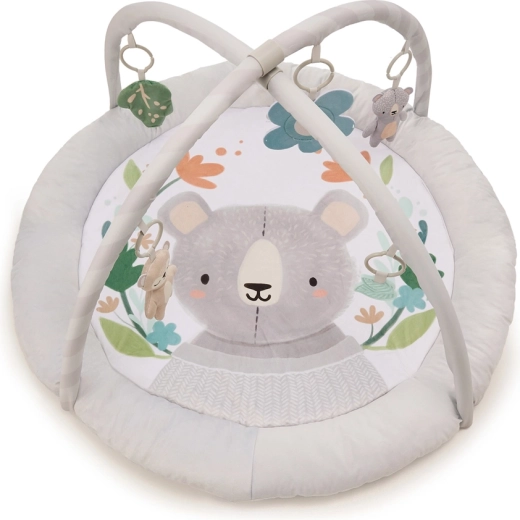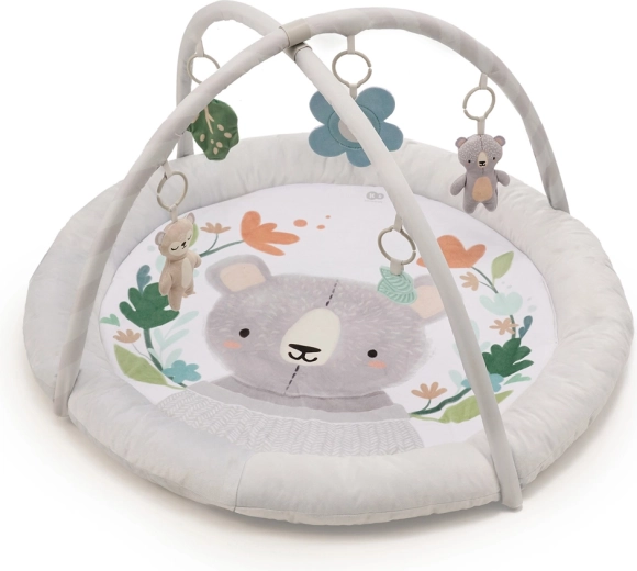 The stylish and practical KINDERKRAFT COZYPLAY play mat in light grey offers a soft and safe environment from birth. Two flexible arches with five hangable toys (a mirror, 2 plush toys, a crinkle element, and teethers) support sensory and psychomotor development. The mat is machine-washable, folds quickly, and is ideal for travel.