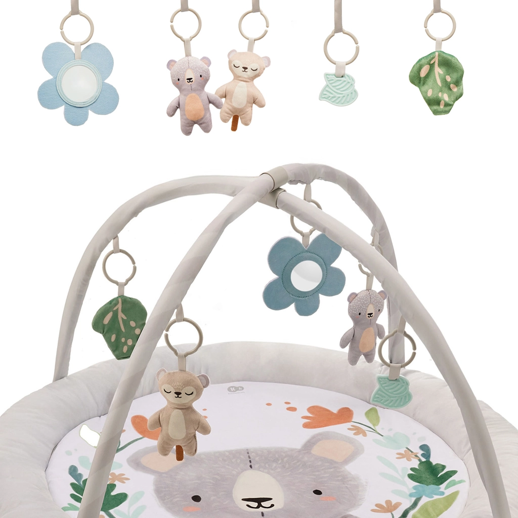 - Sensory stimulation: mirror, crinkle elements, teethers, and varied textures support sight, hearing, and touch.
