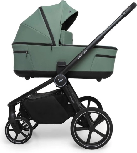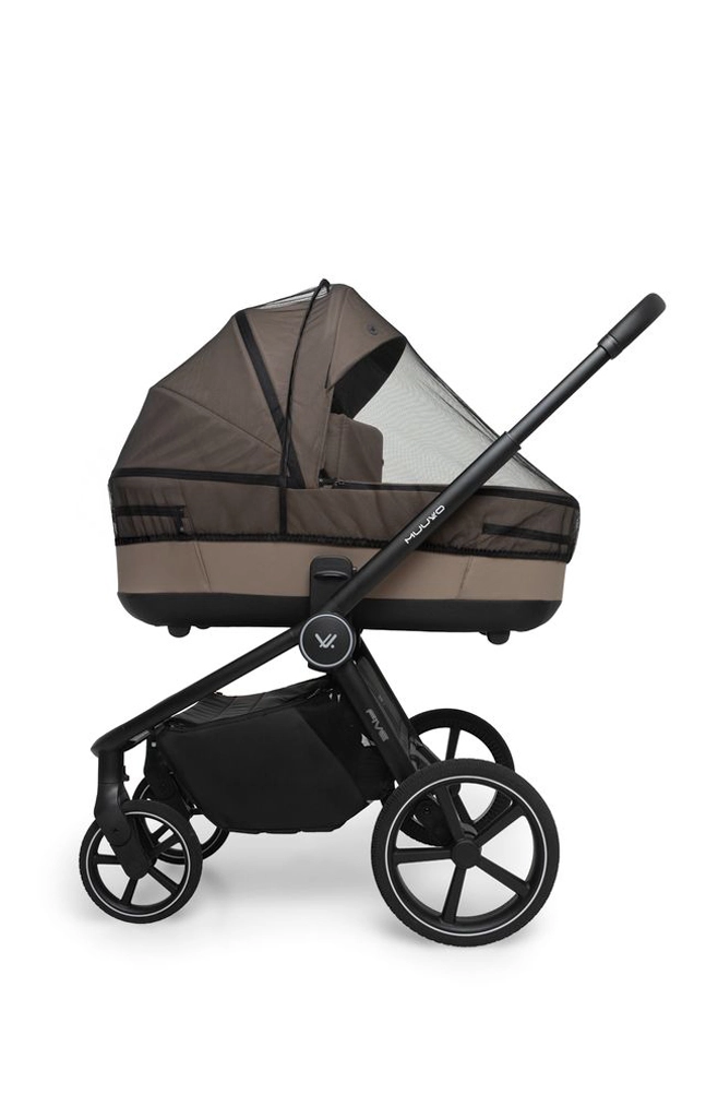 The set includes rich year-round accessories: a mosquito net, sunshade for the carrycot, rain cover, footmuff, changing bag, and a memory foam insert. A practical basket with a load capacity of up to 10 kg and integrated height adapters for both the carrycot and seat further enhance parent comfort.