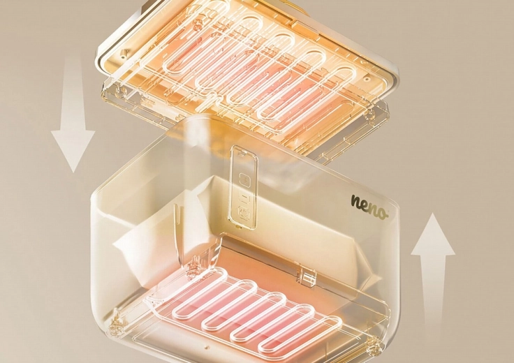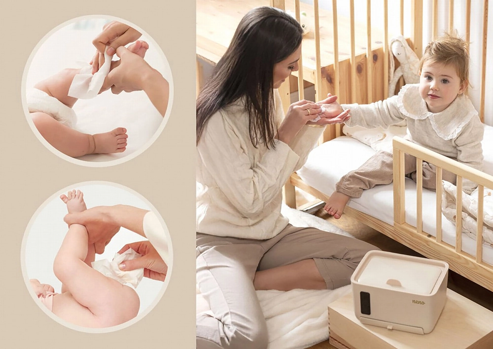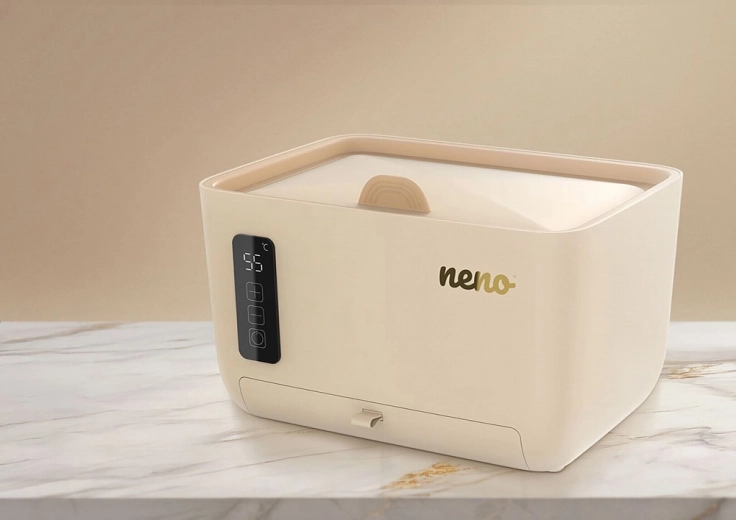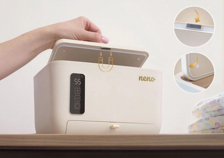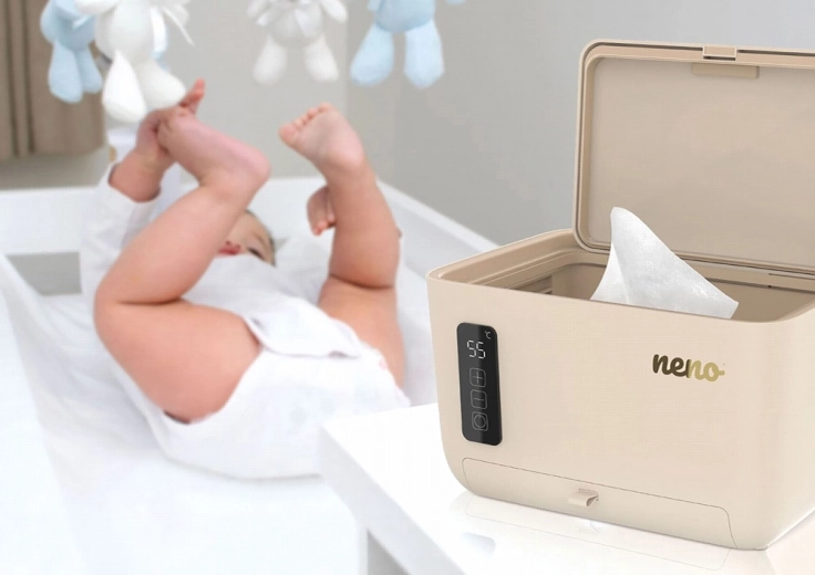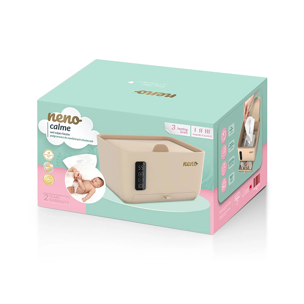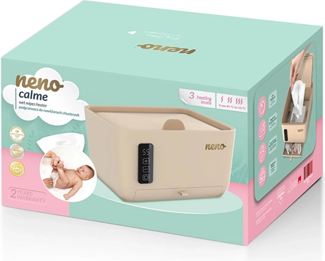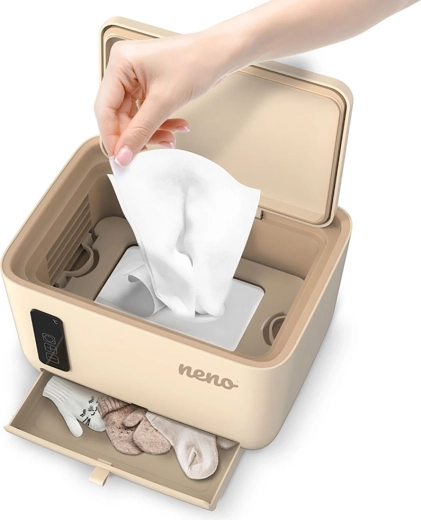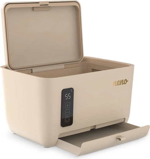Give your baby comfort with every diaper change. Neno Calme is a smart warmer for both wet and dry wipes with adjustable temperature of 45–55 °C, maintaining the ideal humidity and preventing irritation of sensitive skin. It offers fast heating, quiet operation, a magnetic lid with sealing, and a practical accessory drawer – all in an elegant, safe design with touch controls.