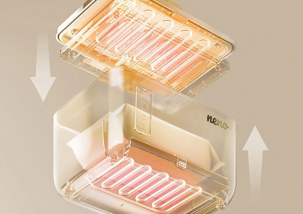 Neno Calme is a modern warmer and wipe box that enhances comfort during baby care. Thanks to three heating levels (45/50/55 °C) and dual-sided heating from top and bottom, it provides wipes with an even, pleasant temperature without the risk of overheating or drying out. The magnetic lid with a seal saves energy and helps retain moisture inside.