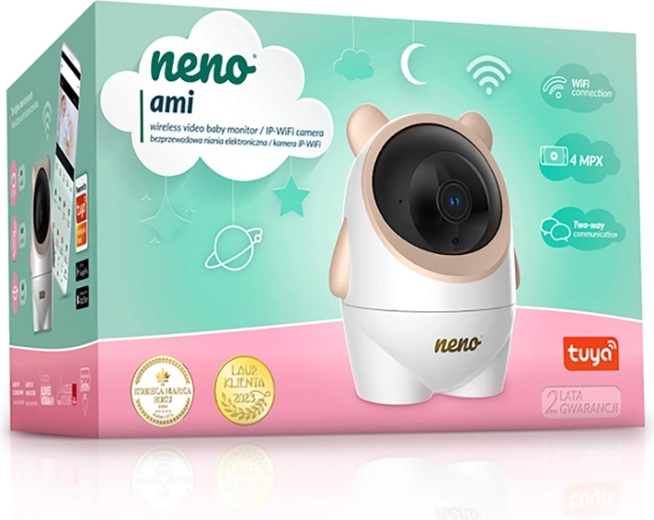 Neno Ami is an intelligent video baby monitor that combines a cute design with advanced technology. It provides detailed monitoring in 4 MP resolution (2560 × 1440 px), smooth camera head rotation, and a wide 120° field of view. Thanks to the night mode with IR illumination, you can see what’s happening in the nursery even in the dark.