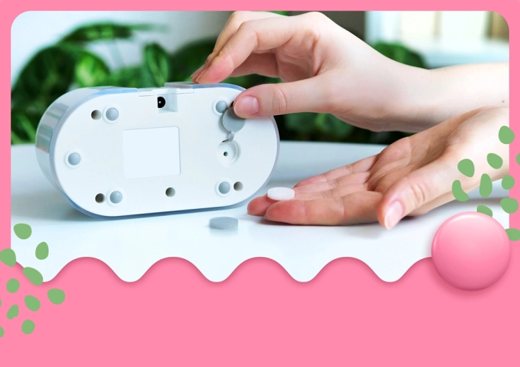 For comfortable home use, the device features quiet operation (≤ 52 dB), simple one-button control, and a long 150 cm tube. Stability is ensured by five anti-slip feet, while the large 8 ml cup allows for longer inhalation without frequent refilling. Maintenance is quick and easy, and the package includes 2 replaceable air filters for hygienic operation.