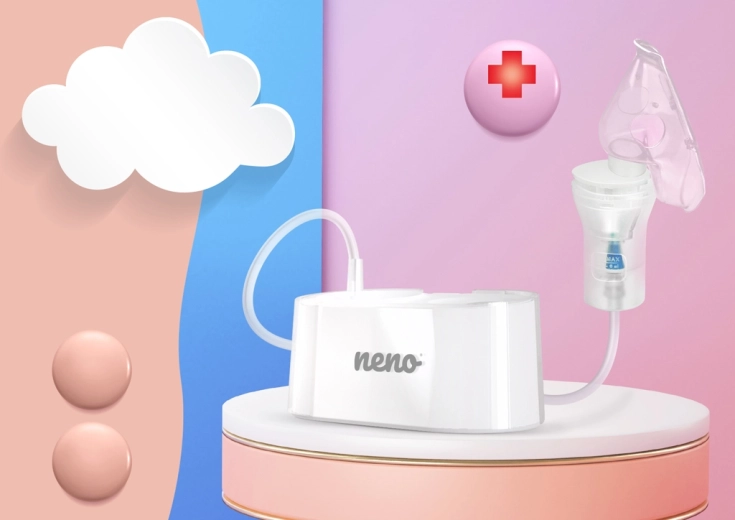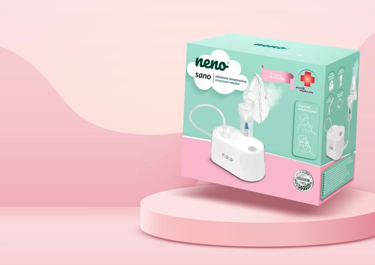The Neno Sano compressor inhaler converts liquid medication into a fine aerosol with an average particle size of about 5 µm and a respirable fraction up to 76%, supporting effective targeting of the airways. With two delivery options—via mask or mouthpiece—it easily adapts to the needs of both children and adults.