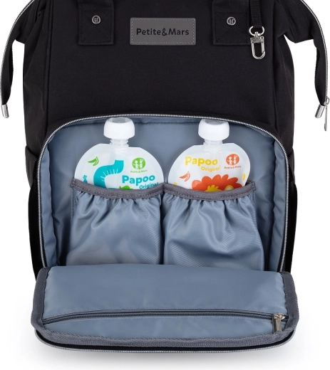 Two thermal pockets keep bottles at the desired temperature, and the waterproof pocket safely separates wet clothes or used wipes from everything else.