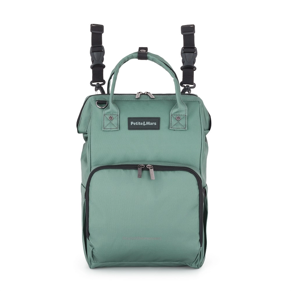 Looking for a lightweight, durable backpack that keeps all baby and parent essentials perfectly organized? Petite&Mars Jack Misty Green is designed to match your pace. Thanks to the two-way zipper and wide opening, you get an instant overview of the contents, while the light lining makes it easy to find small items.