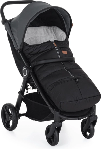 The smart 3-in-1 setup lets you detach the apron to reduce the size for use in a carrycot or car seat. The center zip provides quick opening, while the drawstring around the head creates a protective hood against wind and cold. An anti-slip back (ABS), reflective elements, and easy machine care at 30 °C make this footmuff an ideal choice for everyday walks.