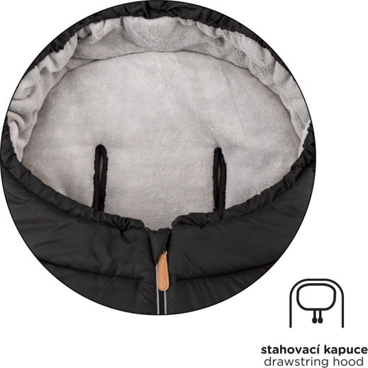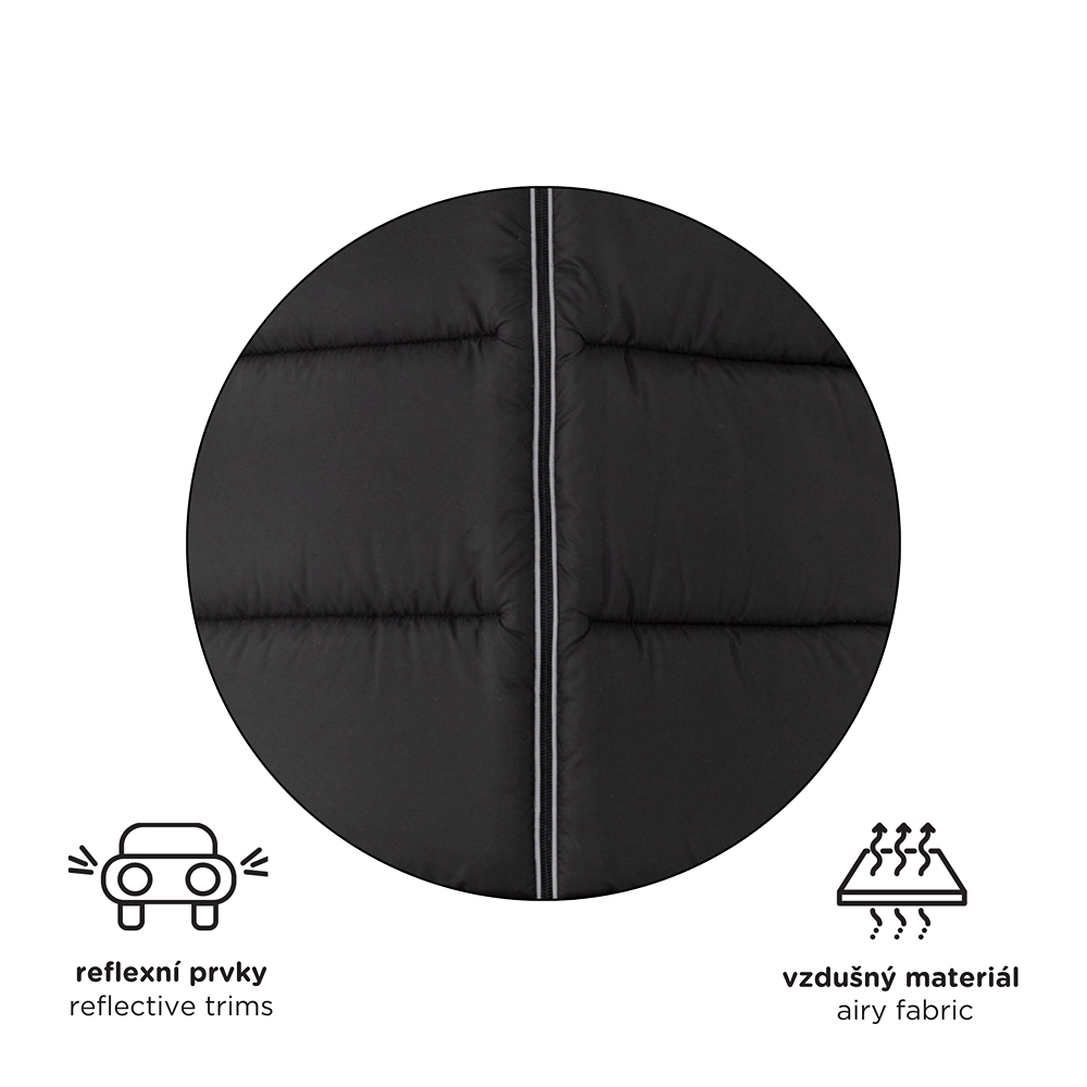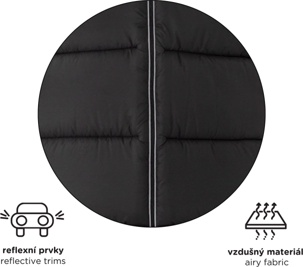 Thoughtful vertical openings for safety harnesses ensure wide compatibility with most stroller brands. An anti-slip back (ABS) prevents shifting in the seat, and reflective elements improve visibility in low light. The central zipper provides quick access to your child, and the lower, easy-wipe section is practical even for shoes-on feet.