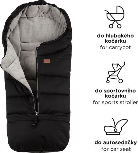 By unzipping the apron, you can shorten the footmuff for a carrycot or car seat. The bottom section has an easy-care interior—ideal for shoes-on little feet.