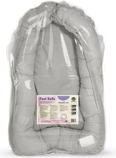 Baby nest PETITE&MARS Feel Safe, light grey, 90 × 60 cm
