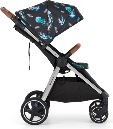 The Limited 100 collection adds a unique canopy and insert with the Jellyfish motif — in an edition of just 100 pieces. The set also includes a changing bag, footmuff/leg cover, and three-piece strap padding. With an adjustable handlebar, a rotating and removable bumper bar, and quality suspension with solid rubber wheels, the ride is smooth and worry-free from punctures.