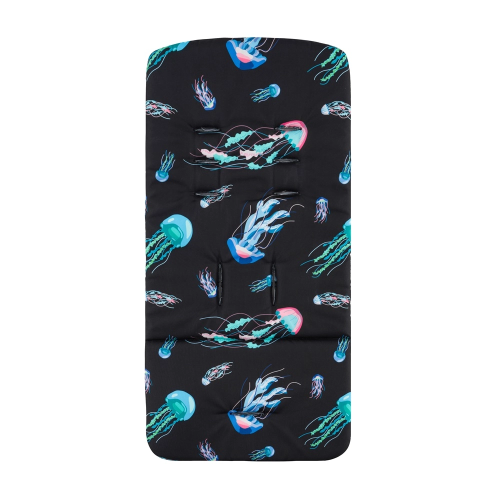 - Frame, seat fabric, solid rubber wheels, Jellyfish canopy, insert matching canopy color, changing bag, footmuff/leg cover, 3-piece padding