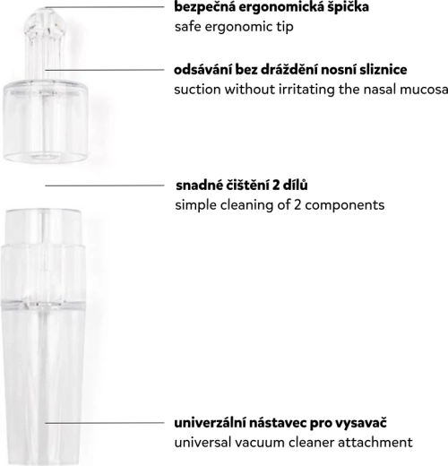 Thanks to the specially shaped tip and safe, bisphenol-free material, suction is comfortable and gentle on the mucosa. The aspirator can be easily disassembled and boiled for perfect hygiene, while the durable, unbreakable material ensures a long service life. An ideal helper for colds and runny noses from the very first days of life.