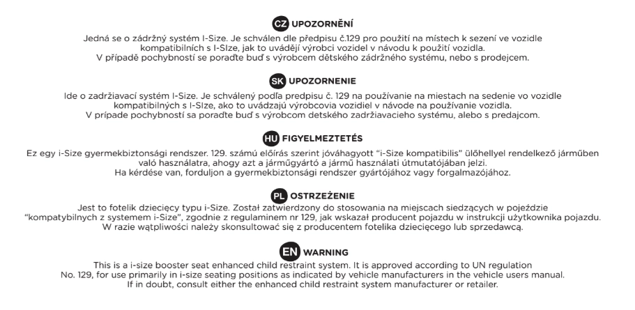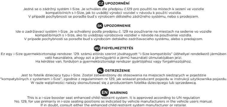 • i-Size ECE R129 — modern safety standard for correct seating and belt guidance