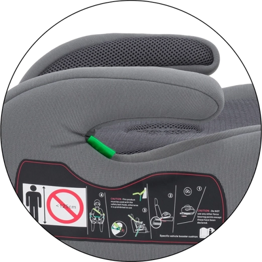 Integrated ISOFIX connectors provide a firm, quick installation that prevents the booster from shifting and increases safety during braking.