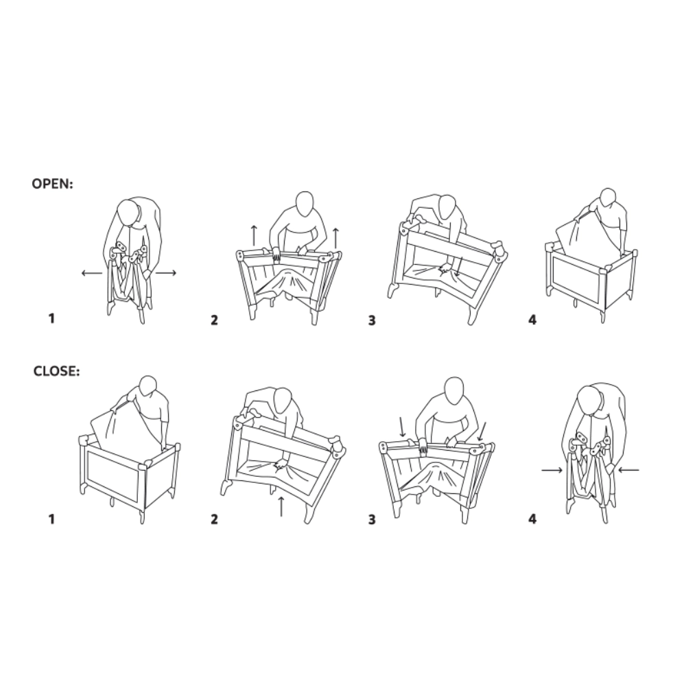 The cot meets the EN 716 standard and is designed with safety in mind—Double Lock prevents accidental folding during use. Included are a foldable sleeping surface and a carry bag. For newborns, an additional upper level can be purchased to make care more convenient and ergonomic.