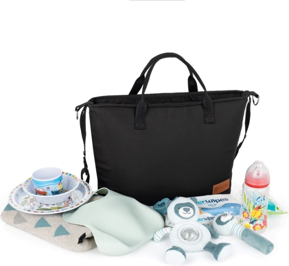 The elegant and universal black PETITE&MARS diaper bag is designed for parents who want all baby essentials at hand and neatly organized. The main pocket holds diapers, bottles, and a change of clothes, while three internal pockets make it easy to find what you need quickly.