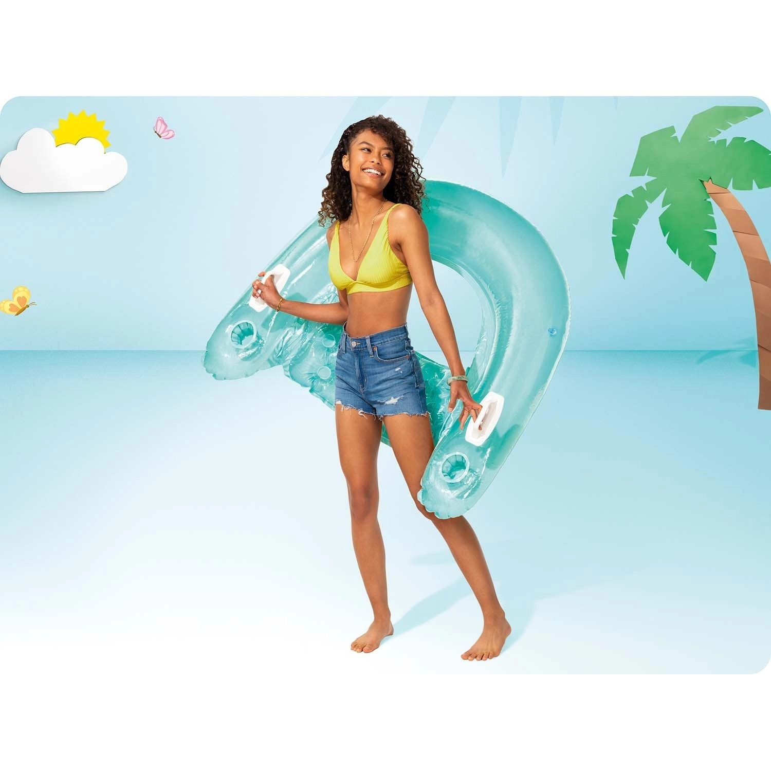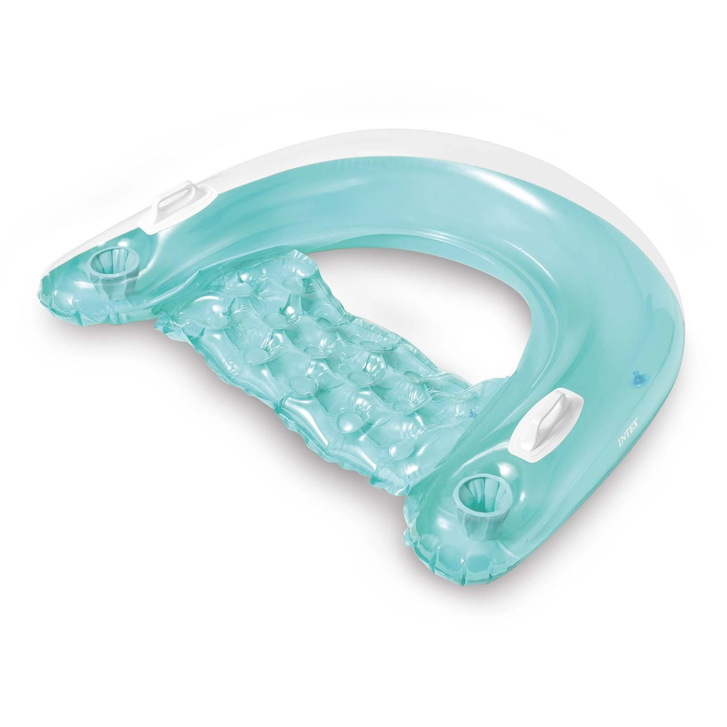 The INTEX inflatable chair measuring 147 × 99 cm is designed for comfortable relaxation on the water. The transparent summer look in turquoise/orange, a pleasant backrest, and a bubble-textured seat keep your body comfortably above the surface. Two integrated cup holders ensure your chilled drink is always within reach.