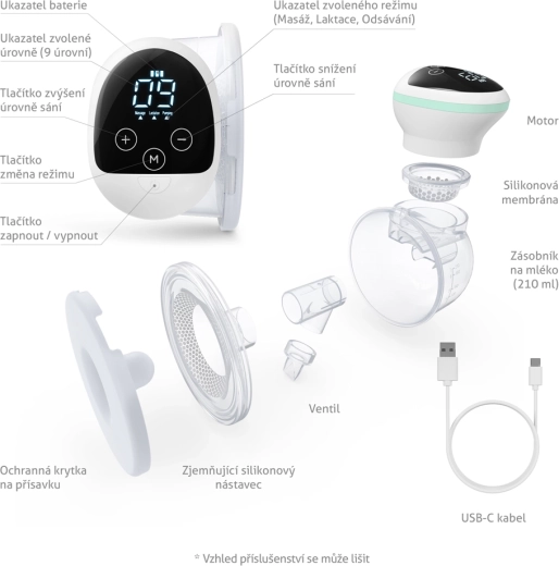 • Hands-free operation – compact, all-in-one design; can be used with a special bra.