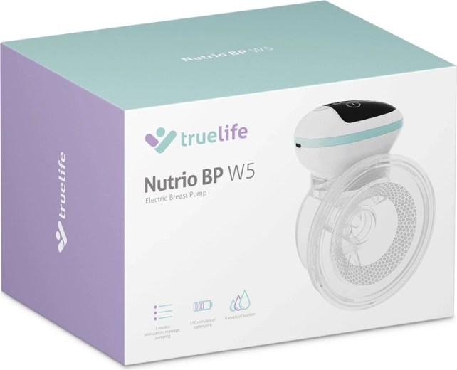 The TrueLife Nutrio BP W5 is a modern electric hands-free pump that naturally supports lactation. Three smart modes—stimulation to trigger let-down, gentle massage for relaxation, and efficient expression that mimics a baby’s suckling—provide maximum comfort. Each mode can be easily fine-tuned with nine intensity levels.