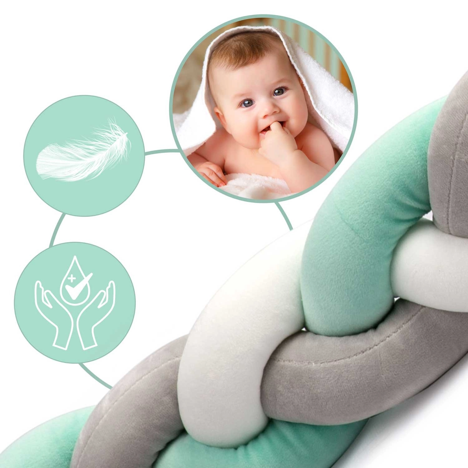 Soft, anti-allergic construction with no sharp parts protects your baby while sleeping and playing, cushioning impacts against the crib slats.
