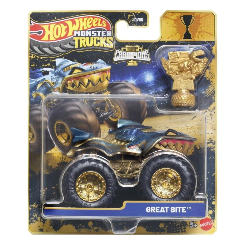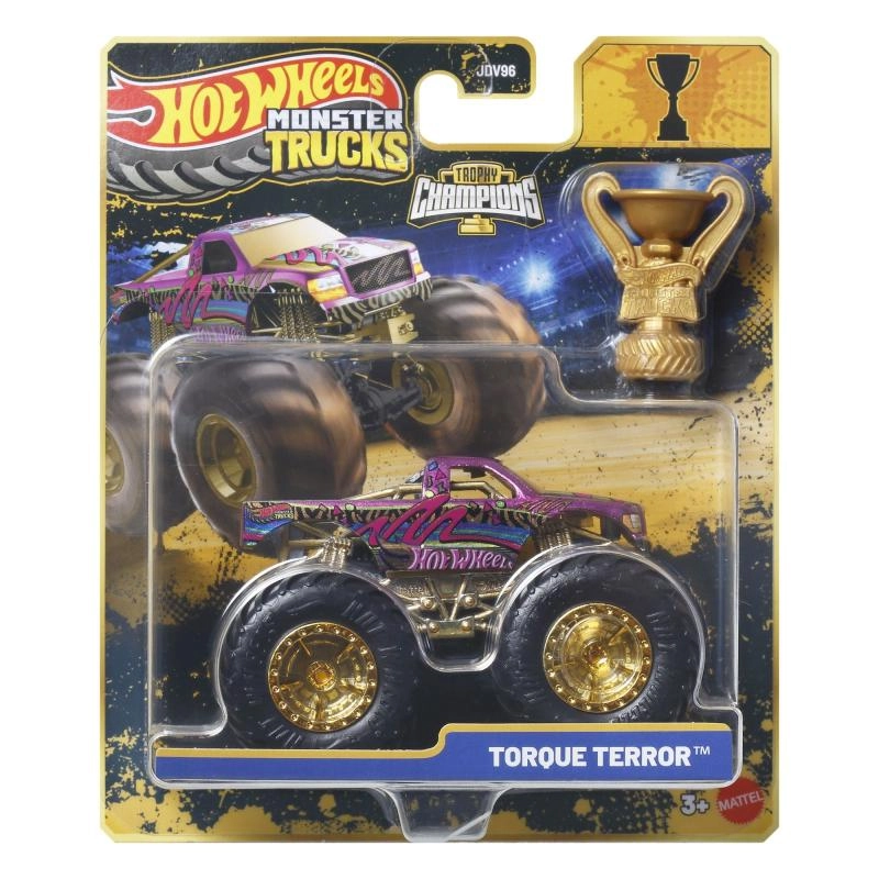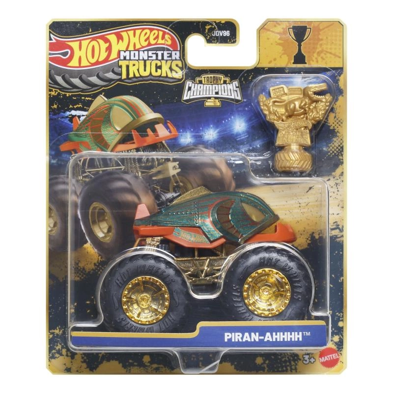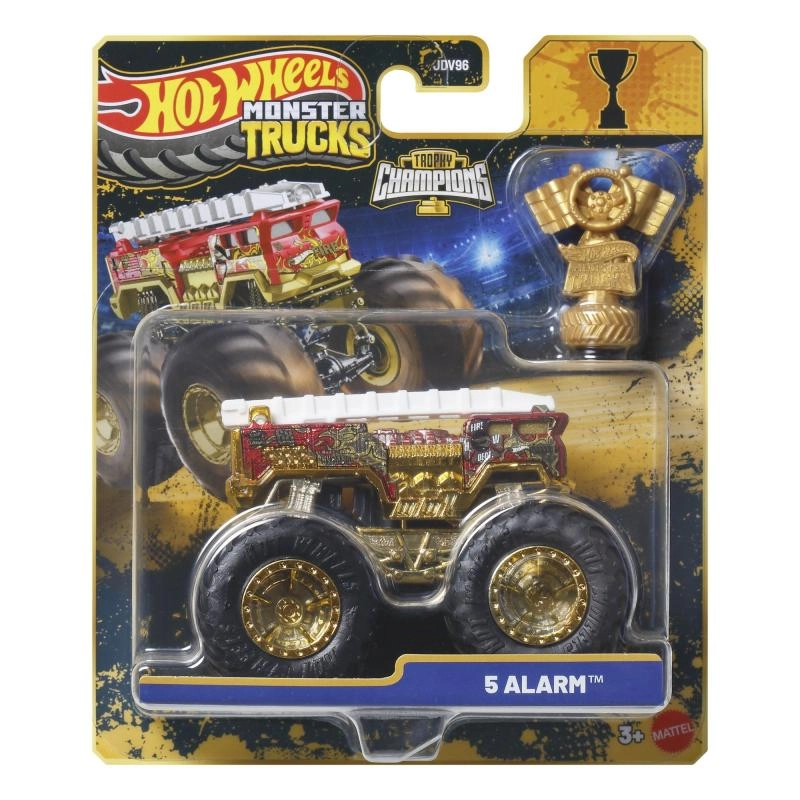 The pack includes a gold Hot Wheels Monster Trucks Live trophy – perfect for racing stories and an eye-catching display.