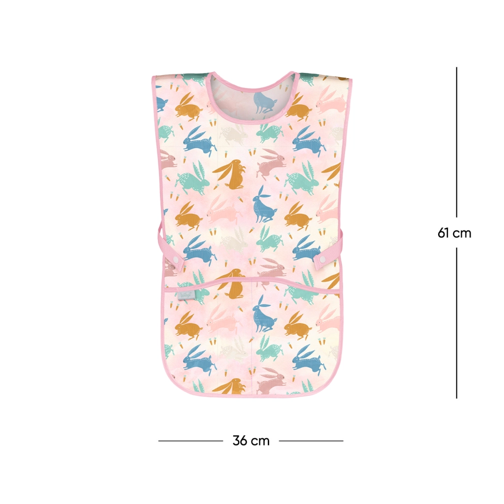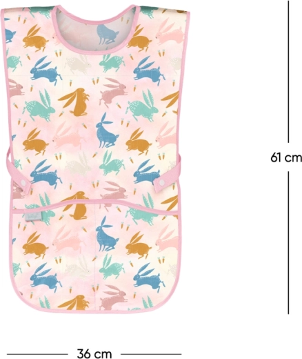 The BAAGL Bunny children's apron is designed to reliably protect clothing from paint, glue, and food. Thanks to the easy-to-wipe material, you can simply clean it after use and it's ready for the next adventure. The cute bunny and carrot motif will delight children and support their joy of creating.