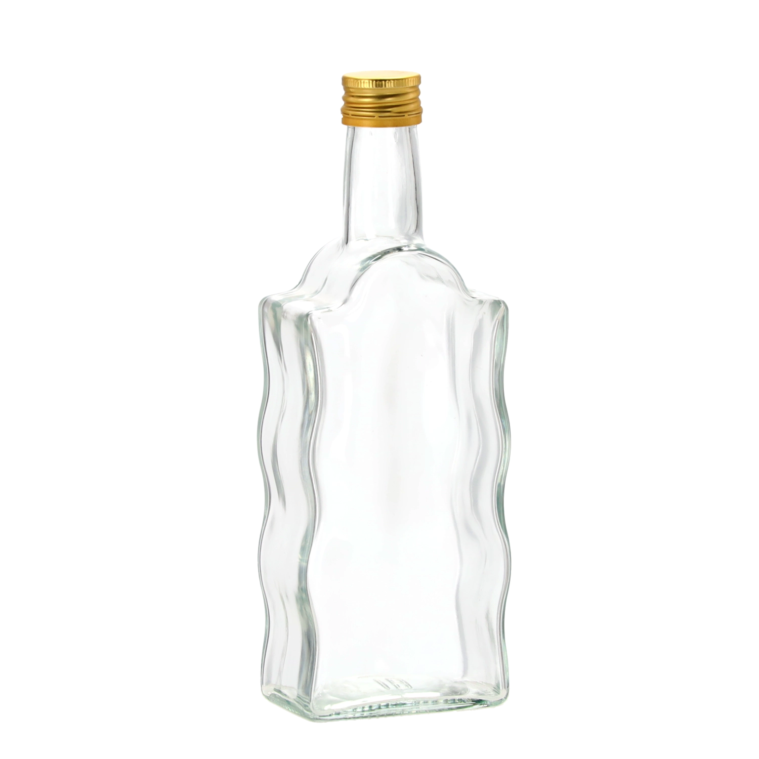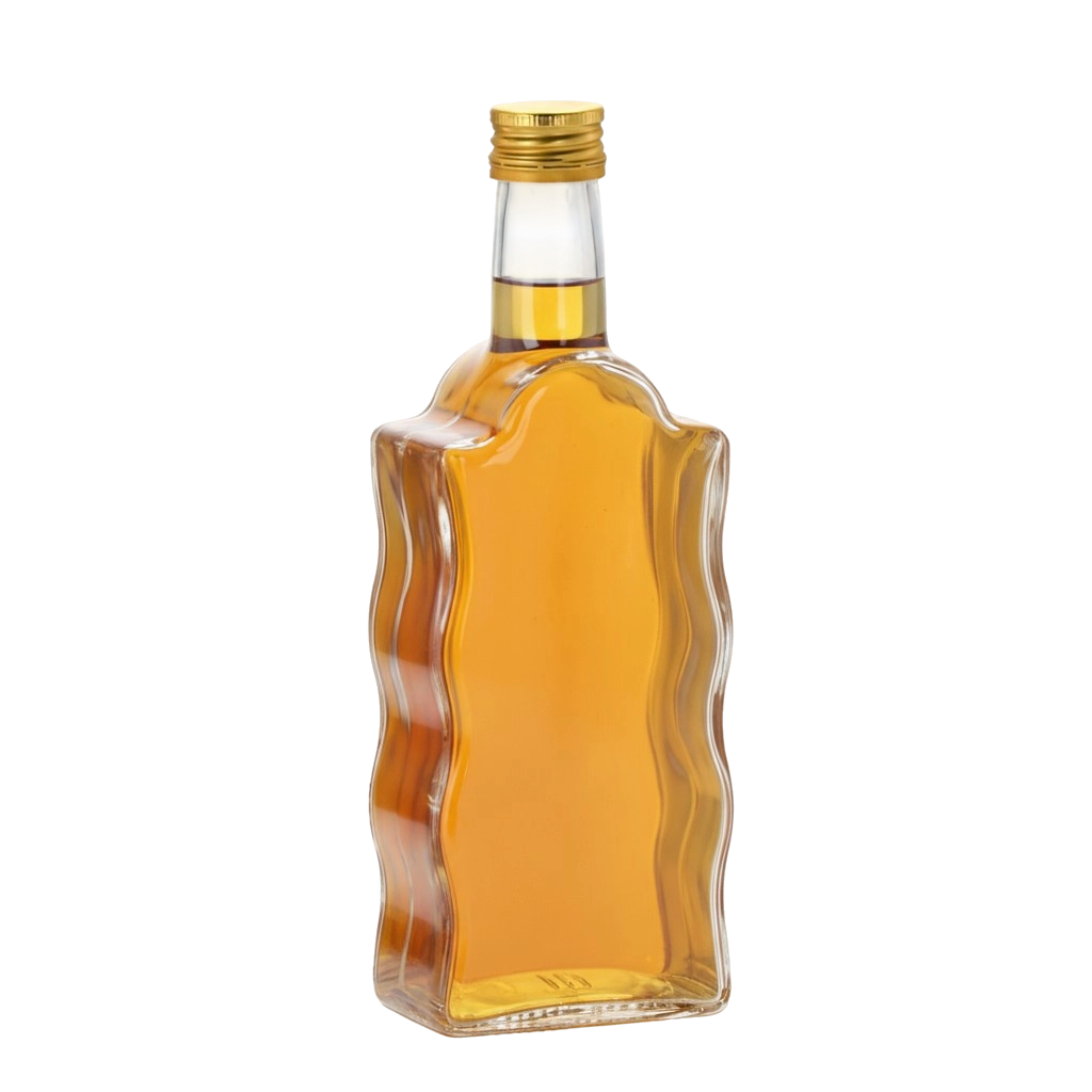 Looking for a versatile and stylish bottle for homemade beverages? The Fala 500 ml glass bottle combines high-quality clear glass with an elegant wavy design, making it stand out in the kitchen or home bar. The practical metal screw cap with a 28 mm diameter keeps the contents fresh and securely sealed.