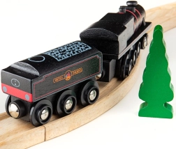 Beautiful replica of a steam locomotive brings the charm of the golden age of railways into your home. This toy supports children's imagination and dexterity and is made from quality materials.