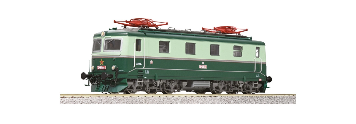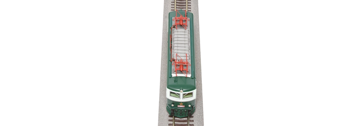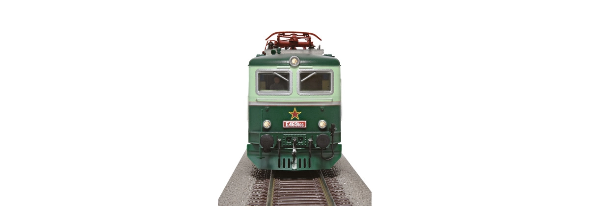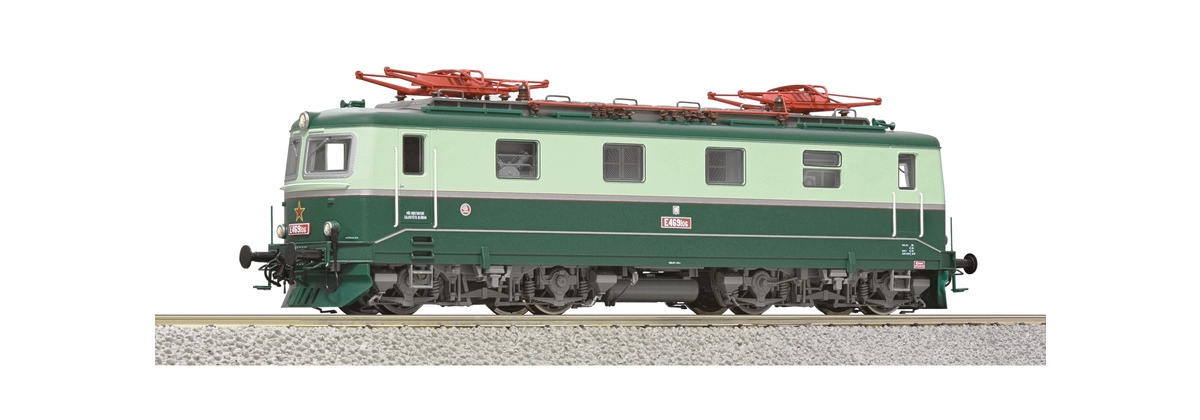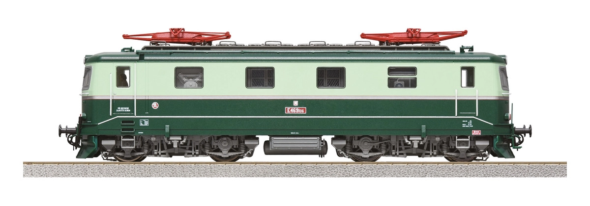This ČSD E 469.1 electric locomotive model faithfully captures the appearance of the original in the iconic two-tone green livery with red pantographs. The high-quality chassis with cardan shaft drive and proven gear system ensures smooth and quiet operation, while one axle with a traction tire increases adhesion and tractive effort.