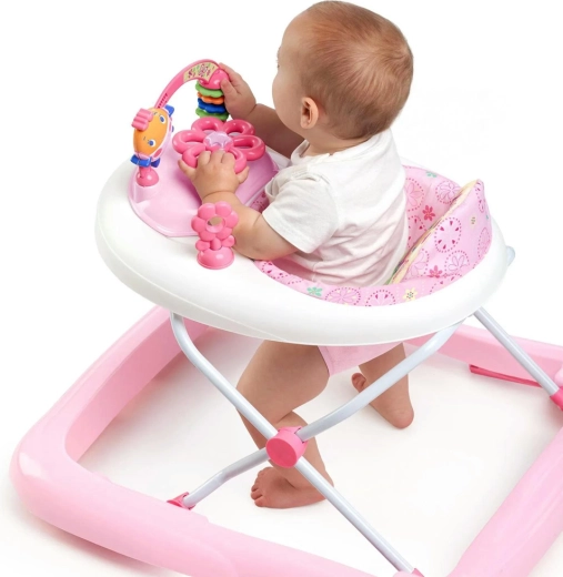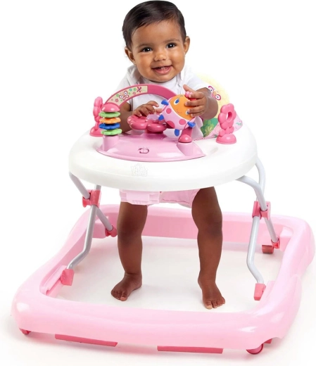 The Bright Starts JuneBerry Delight walker combines a stable design with engaging play that supports fine motor skills and sensory development. The removable play tray with a steering wheel, lights, and melodies entertains your child both in the walker and on the floor. The high padded backrest provides comfort and proper back support.