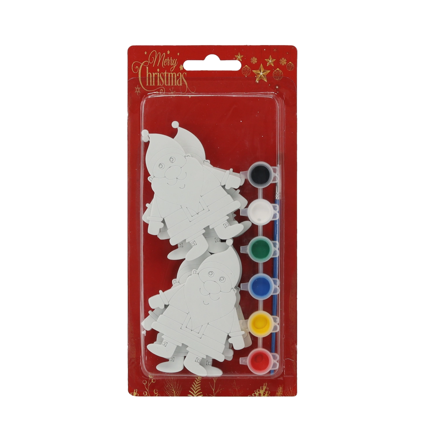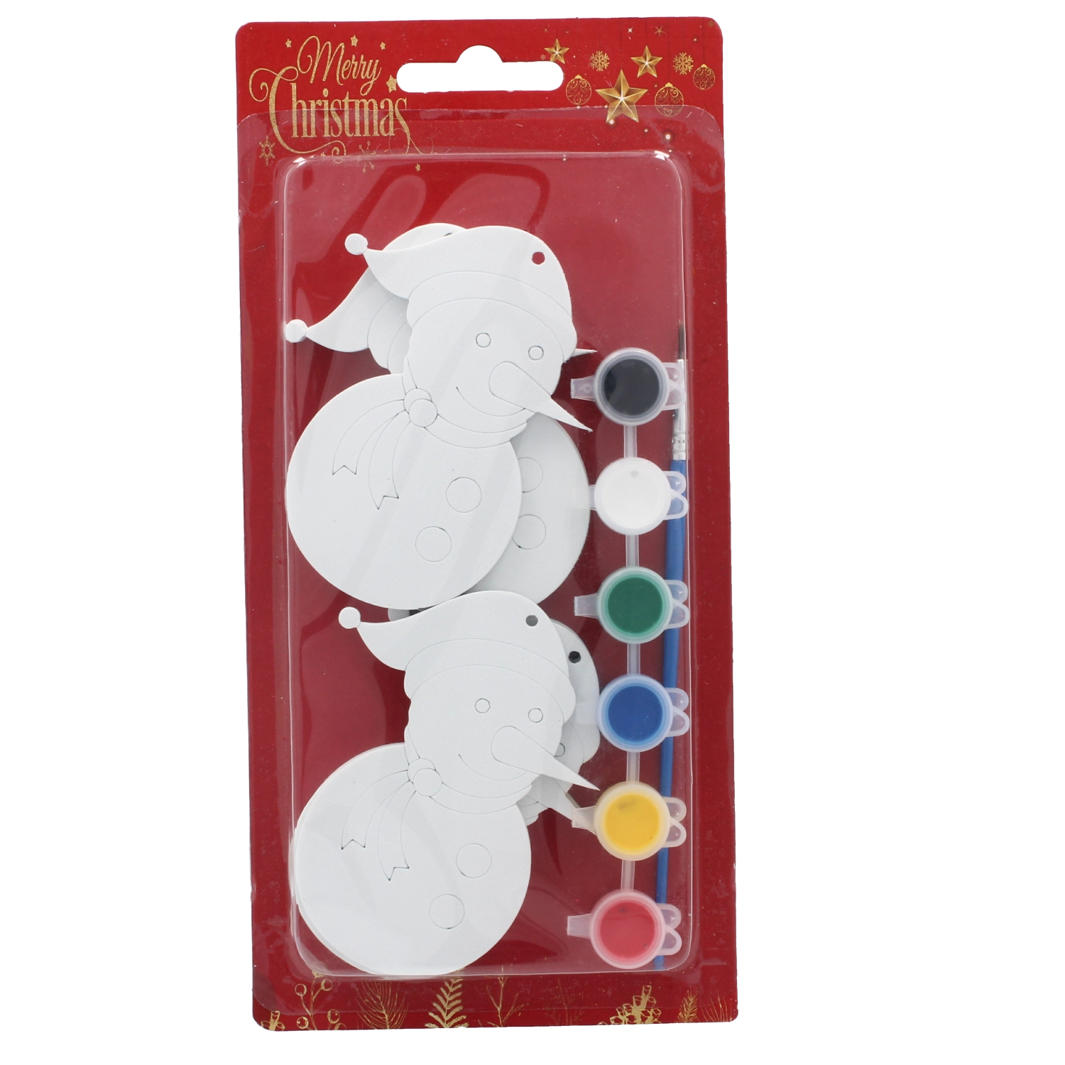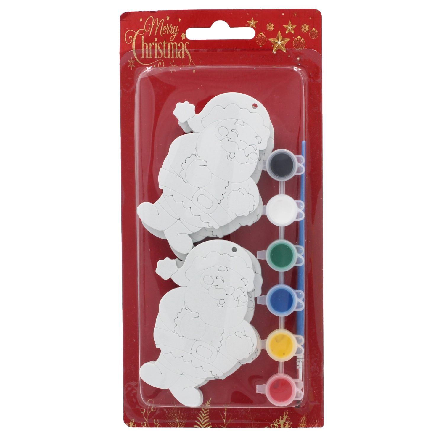 Create your own festive decor with a set of 6 hanging Christmas ornaments, 10 cm in diameter, ready to customize. The box includes 6 paints and a brush, so you can start crafting right away. The varied designs for original decorations spark creativity in kids and adults alike, turning each ornament into a unique gift or a stylish tree accent.